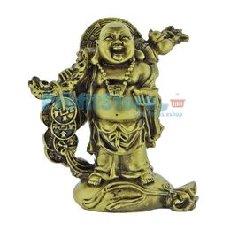 Ο συγκεκριμένος βούδας που βρίσκεται σε καθιστή στάση, πάνω σε νομίσματα, συμβολίζει οικονομικά κέρδη, ενώ ο κόκκινος μανδύας που φοράει του δίνει ισχυρή δύναμη. Επίσης κρατάει μία κολοκύθα (Wu Lou) στο αριστερό του χέρι, σύμβολο καλής υγείας και ένα mala προσευχής στο δεξί του χέρι, σύμβολο ευλογίας και ειρήνης. Υπόσχεται απροσδόκητα κέρδη και αύξηση των εισοδημάτων σας ενώ παράλληλα προστατεύει την υγεία της οικογένειάς σας.