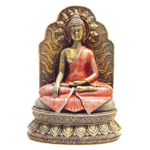 Ο Βούδας καθιστός στο θρόνο του, σε θέση διαλογισμού φορώντας πορφυρό χιτώνα, (το κόκκινο χρώμα ενισχύει τη δύναμη και την ενέργεια του συμβόλου), με την αύρα του ενεργοποιεί τις πνευματικές και σωματικές λειτουργίες χαρίζοντας σε εσάς ενέργεια, ζωντάνια, ευεξία, πνευματική δύναμη, διορατικότητα και αστείρευτη σωματική αντοχή.