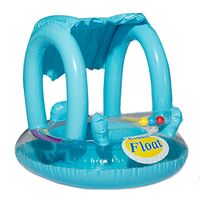 Φουσκωτό σωσίβιο κάθισμα, σε μπλε χρώμα, με σκίαστρο για τον ήλιο. Ιδανικό για μωρά έτοιμα να εξερευνήσουν τον κόσμο της θάλασσας μαζί με τους γονείς τους!
