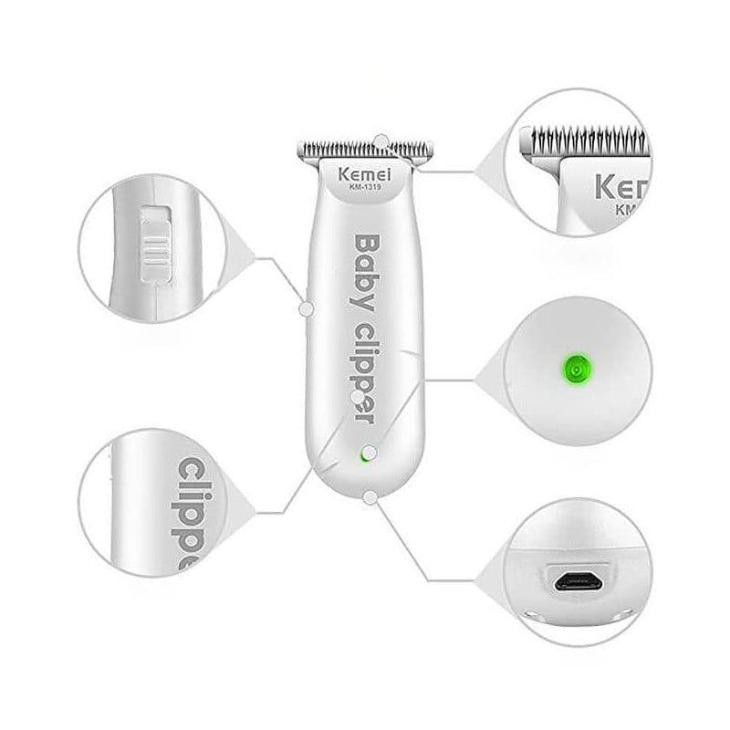 Βρεφική Επαναφορτιζόμενη USB Κουρευτική Μηχανή 3W με Αθόρυβη Λειτουργία για Μωρά & Ευαίσθητες Επιδερμίδες - Kemei KM-1319 Baby Hair Clipper