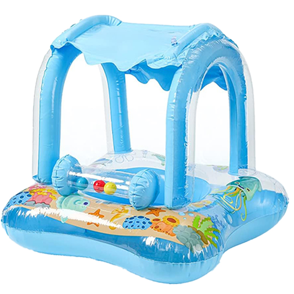 Βρεφικό - Παιδικό Φουσκωτό Σωσίβιο Κάθισμα με Σκίαστρο - Baby Swimming Ring - Γαλάζιο