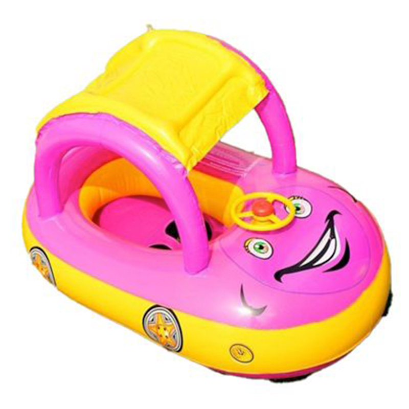 Βρεφικό - Παιδικό Φουσκωτό Σωσίβιο Smile Car με Τιμόνι, Λαβές & Σκίαστρο Ροζ - Inflatable Swim Boat with Shade