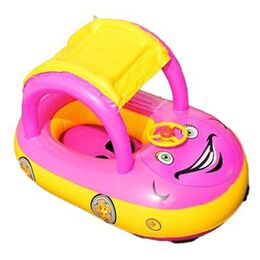1 x Βρεφικό - Παιδικό Φουσκωτό Σωσίβιο Smile Car με Τιμόνι, Λαβές & Σκίαστρο Ροζ-Κίτρινο