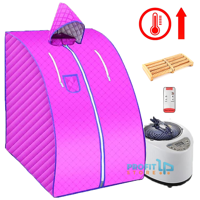 VSauna Φορητή Ατομική Σάουνα - Χαμάμ Ατμού με Ισοθερμική Αδιάβροχη Ολόσωμη Καμπίνα, Κουκούλα, Ρόλερ Μασάζ & Τηλεκοντρόλ - Portable Steam Sauna Ροζ