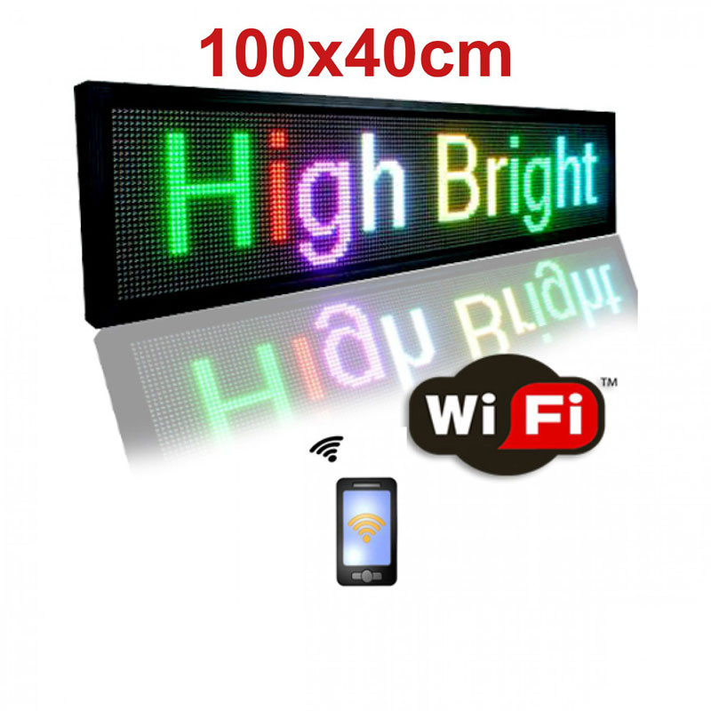 WiFi Αδιάβροχη Ηλεκτρονική Πινακίδα Μονής Όψης με Κυλιόμενη Επιγραφή Πολύχρωμα LED 100x40cm