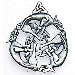 Κατά τη διάρκεια της νύχτας του άγριου κυνηγιού αυτά τα εικονιζόμενα κυνηγόσκυλα ανέβηκαν στον νυχτερινό ουρανό ακολουθώντας τον ισχυρό Herne. Ο Herne ήταν ο σκοτεινός θεός του κυνηγιού που λατρευόταν ως προστάτης των πλασμάτων του δάσους. Φορέστε αυτό το φυλαχτό για Ενέργεια και Ηγετικές Ικανότητες.Μέγεθος (εκατ.): 4,6x4