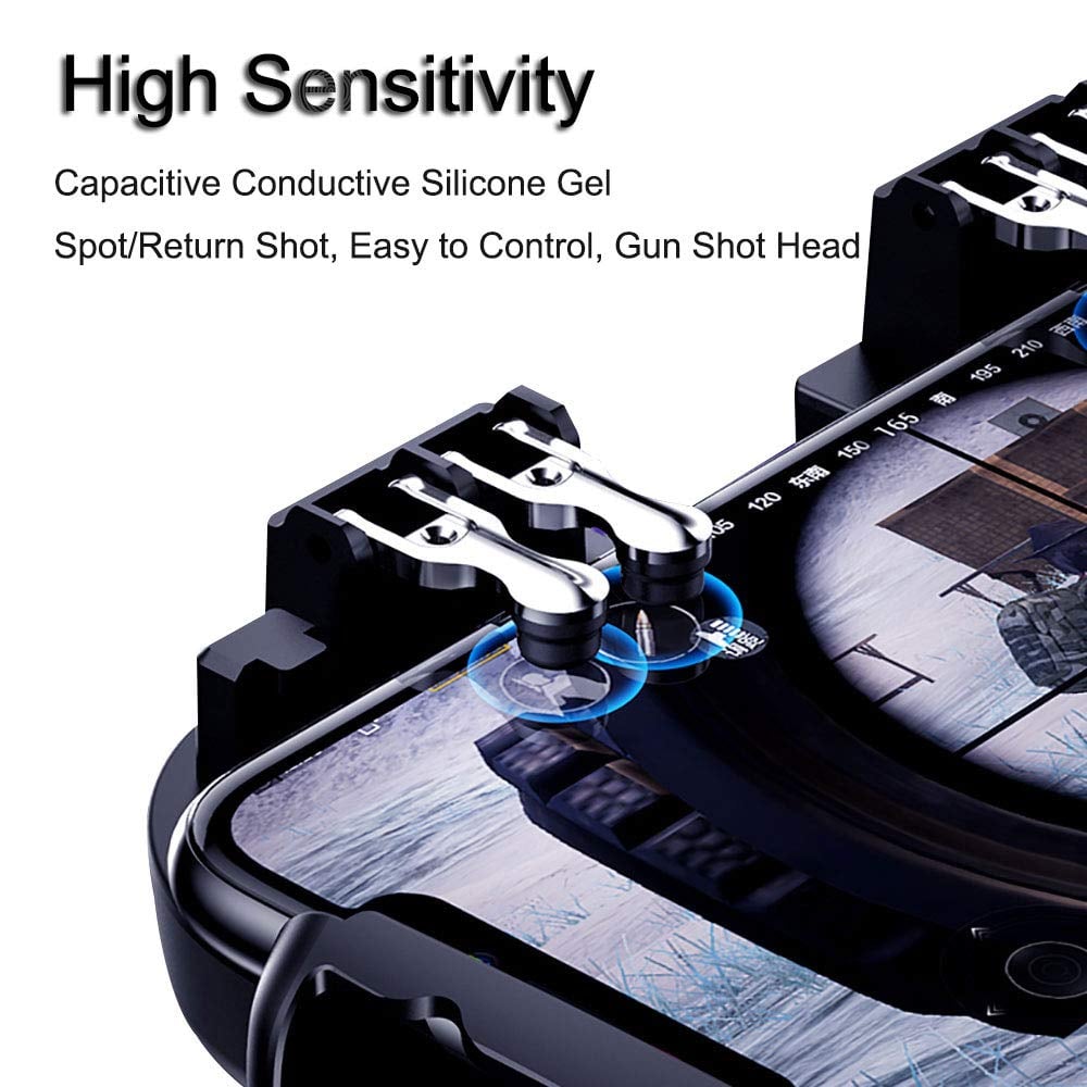 Χειριστήριο Παιχνιδιών PUBG 6 Δάχτυλων R1 R2 L1 L2 Κινητού με Ανεμιστήρα, Μπλε LED Φωτισμό, Βάση Στήριξης & USB Μπαταρία – Fortnite iOs & Android