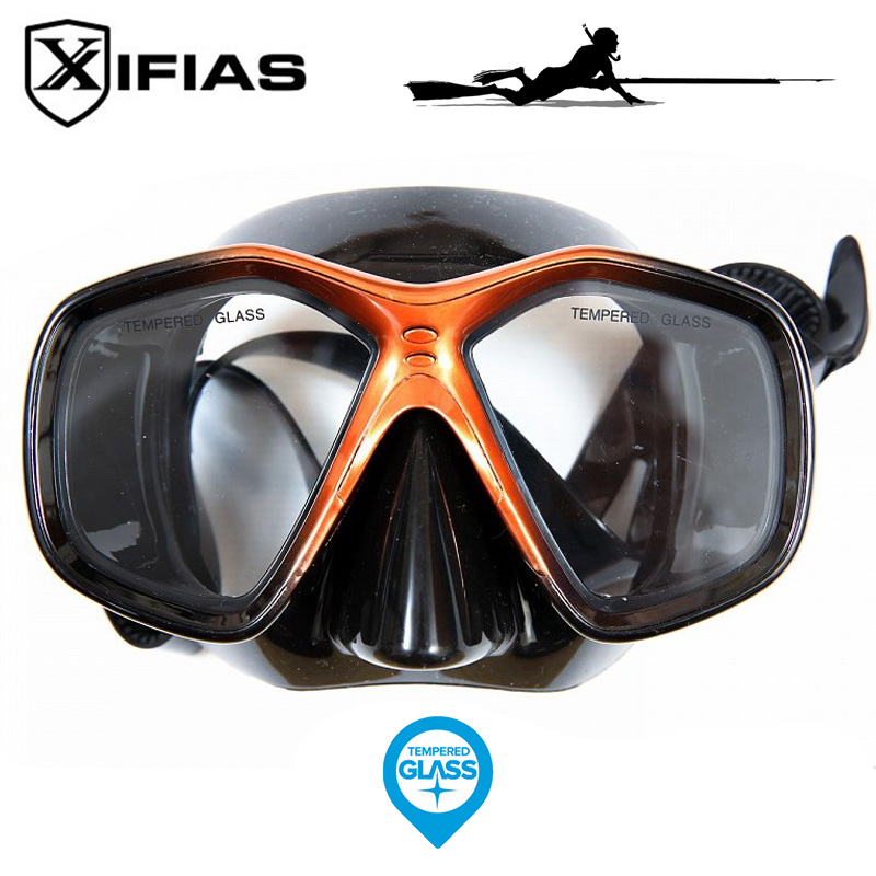 Xifias Καταδυτική Μάσκα Σιλικόνης Πορτοκαλί Tempered Glass Silicone Mask