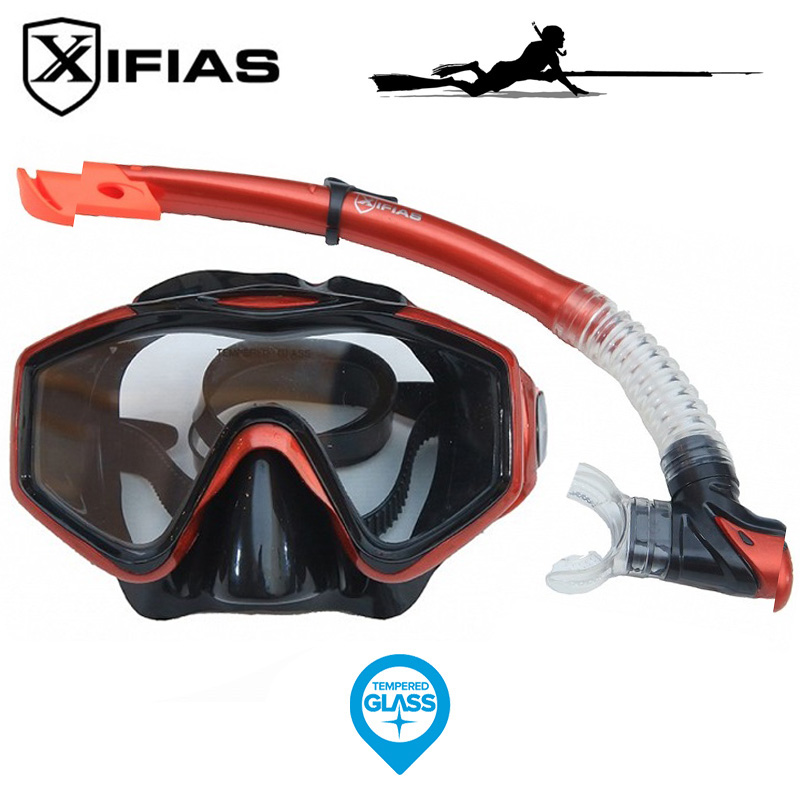 Xifias® Σετ Καταδυτική Μάσκα Siliter & Αναπνευστήρας με Βαλβίδα για Ενήλικες Κόκκινο/ Μαύρο
