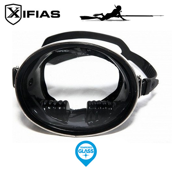 Xifias Καταδυτική Μάσκα Λαστιχένια Στρογγυλή Tempered Glass Rubber Black Inox