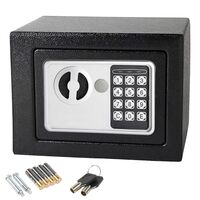 Kατασκευασμένο από ατσάλι με δύο ενισχυμένους πείρους κλειδώματος διαμέτρου 1,5cm, είναι η ιδανική λύση για την ασφάλιση χρημάτων και πολύτιμων αντικειμένων. Διαθέτει προγραμματιζόμενη ψηφιακή κλειδαριά 3-8 ψηφίων και 2 κλειδιά ασφαλείας σε περίπτωση ανάγκης.