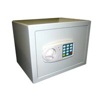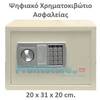 Χρηματοκιβώτιο ασφαλείας με ηλεκτρονική κλειδαριά και πόμολο. Σε περίπτωση εξάντλησης της μπαταρίας υπάρχει και κλειδαριά ασφαλείας. Προγραμματιζόμενος κωδικός guest από 3 έως 8 ψηφία. Ένδειξη χαμηλής τάσης μπαταρίας. Στήριξη σε οριζόντια ή κατακόρυφη επιφάνεια με μεταλλικά ούπα (περιλαμβάνονται).