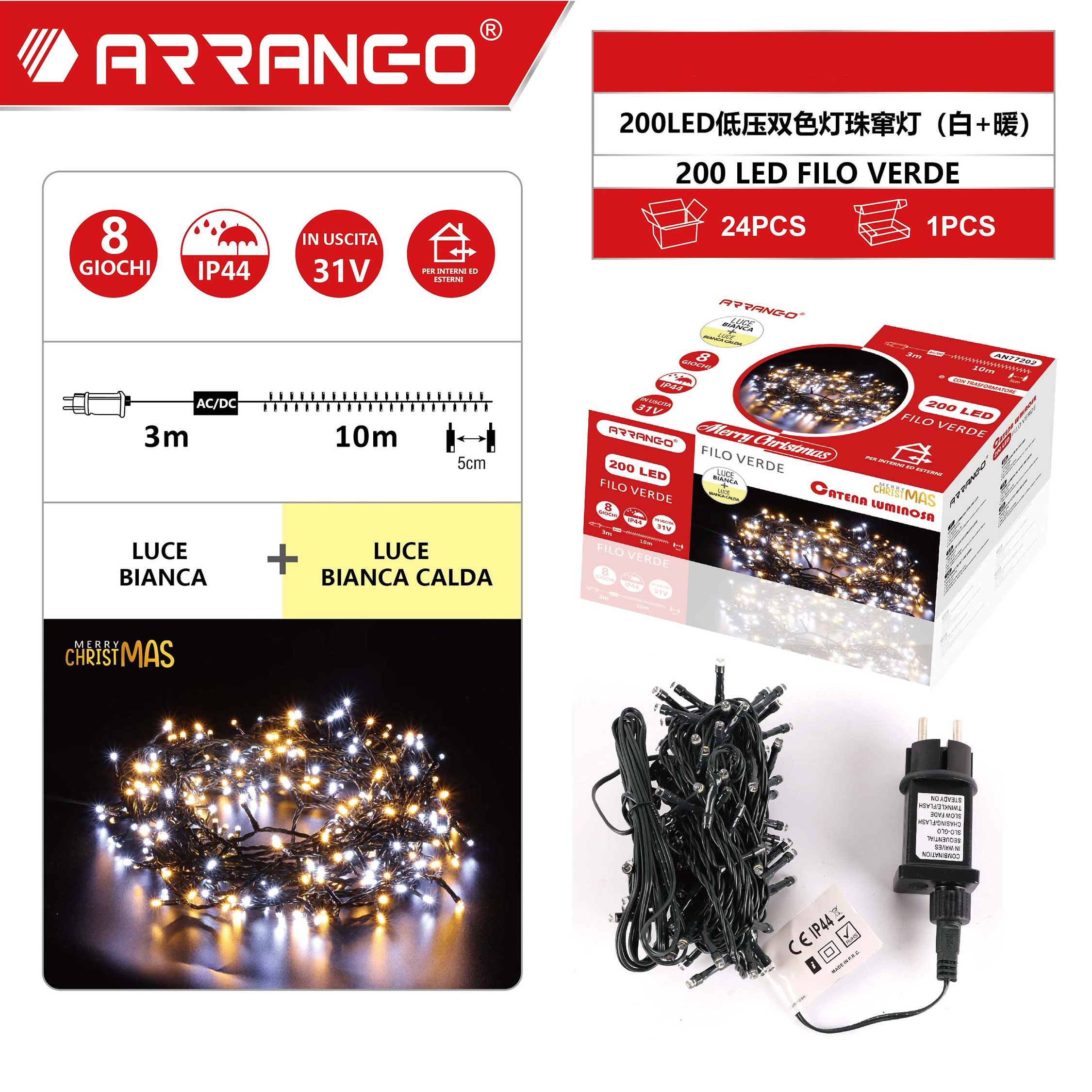 Χριστουγεννιάτικα Αδιάβροχα Λαμπάκια 13m 200 LED Θερμού & Ψυχρού Λευκού Φωτισμού με 8 Προγράμματα Arrango