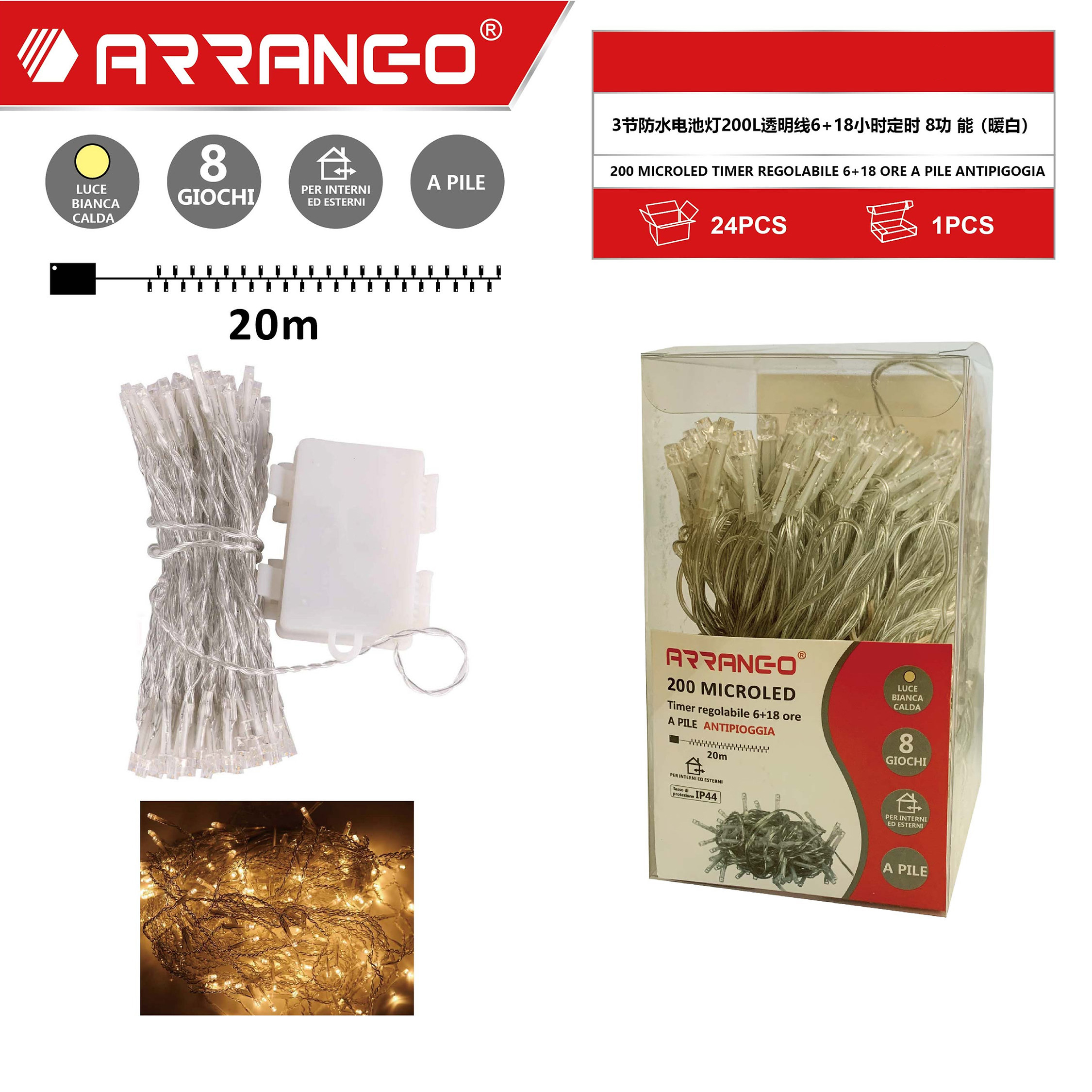 - 1 x Χριστουγεννιάτικα Αδιάβροχα Λαμπάκια Μπαταρίας 20m 200 MicroLED Θερμού Λευκού Φωτισμού με 8 Προγράμματα & Χρονοδιακόπτη