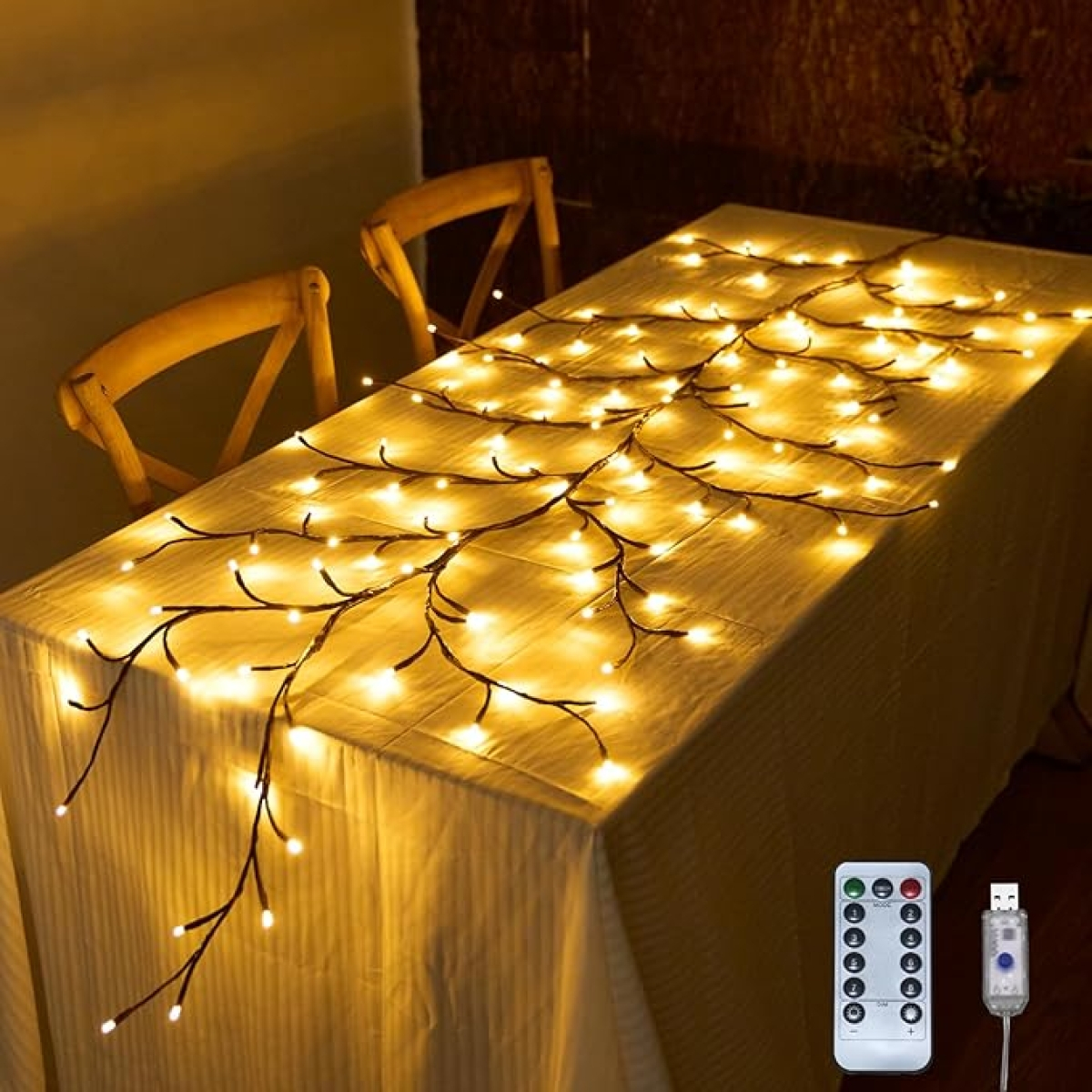 - Χρώμα: Καφέ κορμός με θερμό λευκό φωτισμό