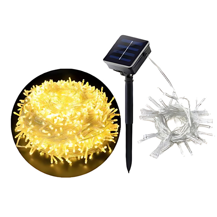 Χριστουγεννιάτικα Ηλιακά Λαμπάκια 140 LED 7m Θερμού Λευκού – Εξωτερική Διακόσμηση με Ηλιακό Πάνελ