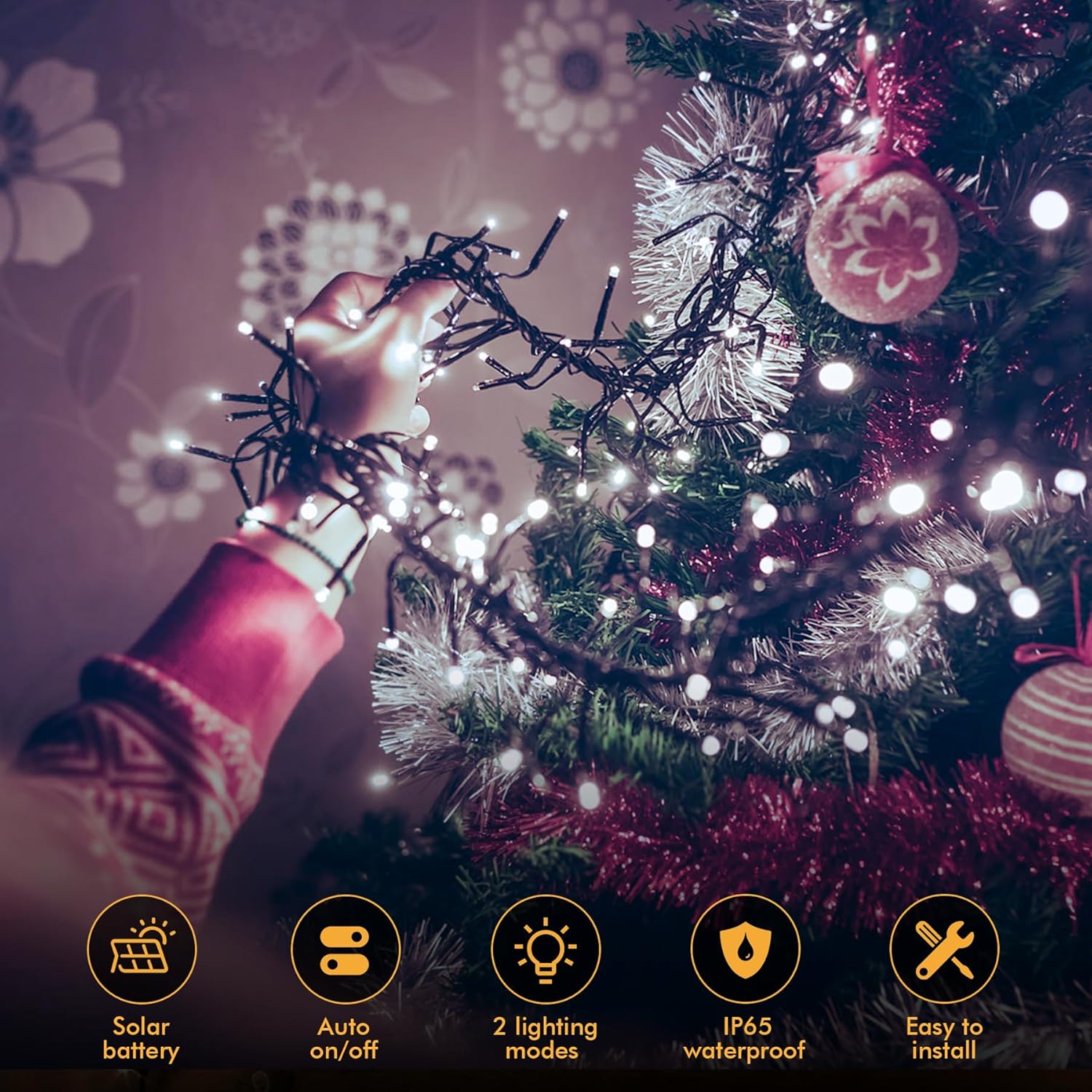 Χριστουγεννιάτικα Ηλιακά Λαμπάκια 360 LED Ψυχρού Λευκού Φωτισμού - 17.95 m, Αδιάβροχα IP44