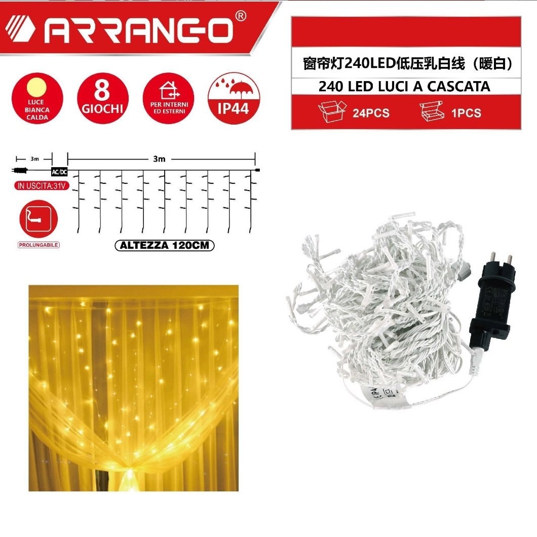 - 1 x Χριστουγεννιάτικα Λαμπάκια Κουρτίνα Αδιάβροχα 6m 240 LED με Θερμό Λευκό Φωτισμό & 8 Προγράμματα Arrango