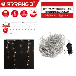 Χριστουγεννιάτικα Λαμπάκια Κουρτίνα Αδιάβροχα 9m 480 LED με Θερμό Λευκό Φωτισμό & 8 Προγράμματα Arrango