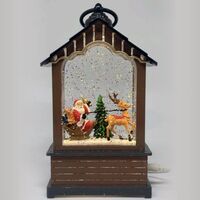 Φωτιζόμενο χριστουγεννιάτικο φανάρι 21 cm με Άγιο Βασίλη και τάρανδο, glitter εφέ και ξύλινη όψη. Ιδανικό για γιορτινή διακόσμηση ή δώρο που θα χαρίσει μαγεία σε κάθε χώρο.