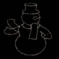 Φωτιζόμενο χριστουγεννιάτικο στολίδι σε σχήμα χιονάνθρωπου, με 250 LED και κινούμενο χέρι. Διαστάσεις 60x50cm, IP44 για εξωτερική χρήση, ιδανικό για αυλές, μπαλκόνια και βιτρίνες.
