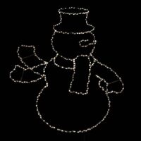 Φωτιζόμενο χριστουγεννιάτικο στολίδι σε σχήμα χιονάνθρωπου, με 192 LED και κινούμενο χέρι. Διαστάσεις 48x42cm, IP44 για εξωτερική χρήση, ιδανικό για αυλές, μπαλκόνια και βιτρίνες.