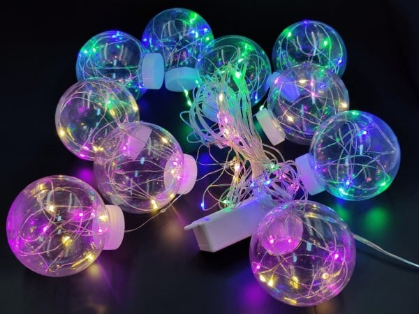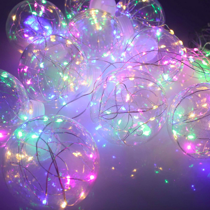 Χριστουγεννιάτικη Κουρτίνα - Φωτάκια 10 Διάφανες Μπάλες με RGB Φωτισμό 3m - Curtain Light 10 Hangings