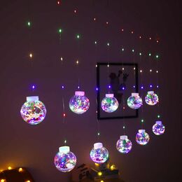 Μπείτε στο κλίμα των Χριστουγέννων και διακοσμήστε τους χώρους σας με την Χριστουγεννιάτικη κουρτίνα 3m RGB Φωτισμού με 10 διάφανες μπάλες!