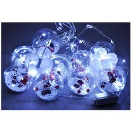Χριστουγεννιάτικη Κουρτίνα - Φωτάκια Άγιος Βασίλης 10 Διάφανες Μπάλες με Λευκό Ψυχρό Φωτισμό 3m - Curtain Light 10 Hangings