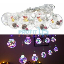 Χριστουγεννιάτικη Κουρτίνα - Φωτάκια Καμπάνα 10 Διάφανες Μπάλες με RGB Φωτισμό 3m - Curtain Light 10 Hangings