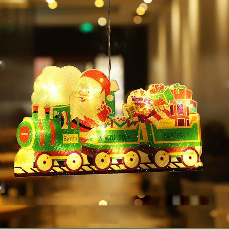 Χριστουγεννιάτικη Κρεμαστή Φιγούρα Τρενάκι με Μπαταρίες Βεντούζα και 10 LED