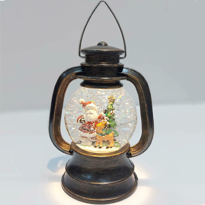 Χριστουγεννιάτικο Διακοσμητικό Φωτιζόμενο Φαναράκι Νερού με Γκλίτερ - Άι Βασίλη, Δέντρο & Τάρανδο 13.5x20cm