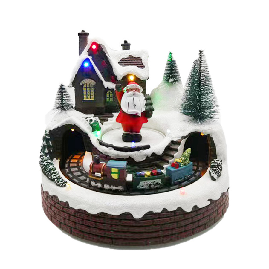 Χριστουγεννιάτικο Διακοσμητικό Φωτιζόμενο Χωριό Μπαταρίας με Κινούμενο Τρένο - Άγιο Βασιλή & Μουσική 20x20x16cm