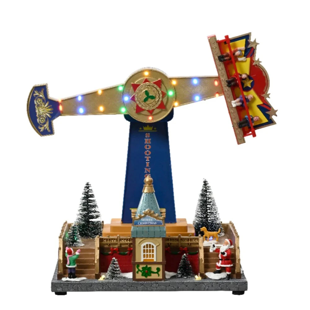 Οι πολύχρωμες λάμπες LED φωτίζουν τη σκηνή, ενώ οι κινούμενες φιγούρες δημιουργούν ένα ζωντανό θέαμα που θυμίζει παραδοσιακό λούνα παρκ.