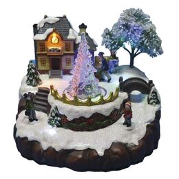 Χριστουγεννιάτικο Φωτιζόμενο Παραδοσιακό Χωριό - Διακοσμητικό με LED Φωτισμό & Κίνουμενες Φιγούρες 20.5cm