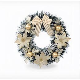Το Χριστουγεννιάτικο στεφάνι με χρυσά λουλούδια και διάμετρο 40cm αποτελεί ένα εντυπωσιακό διακοσμητικό για πόρτα, τοίχο ή τζάκι.