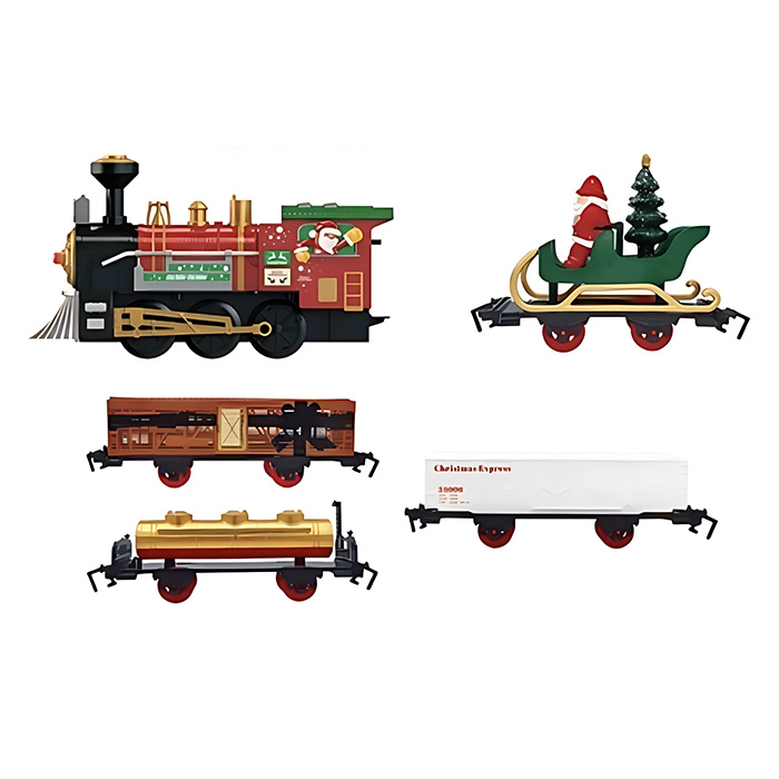 Περιλαμβάνει μηχανή με ήχο, βαγόνια, έλκηθρο του Άγιου Βασίλη και πλήθος διακοσμητικών αξεσουάρ, δημιουργώντας μια ολοκληρωμένη χριστουγεννιάτικη σκηνή.