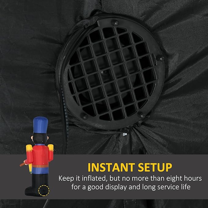 Η εγκατάσταση γίνεται εύκολα και γρήγορα χάρη στον ενσωματωμένο φυσητήρα και τον αντάπτορα 100–240 V, που φουσκώνουν τη φιγούρα αυτόματα σε λίγα δευτερόλεπτα.
