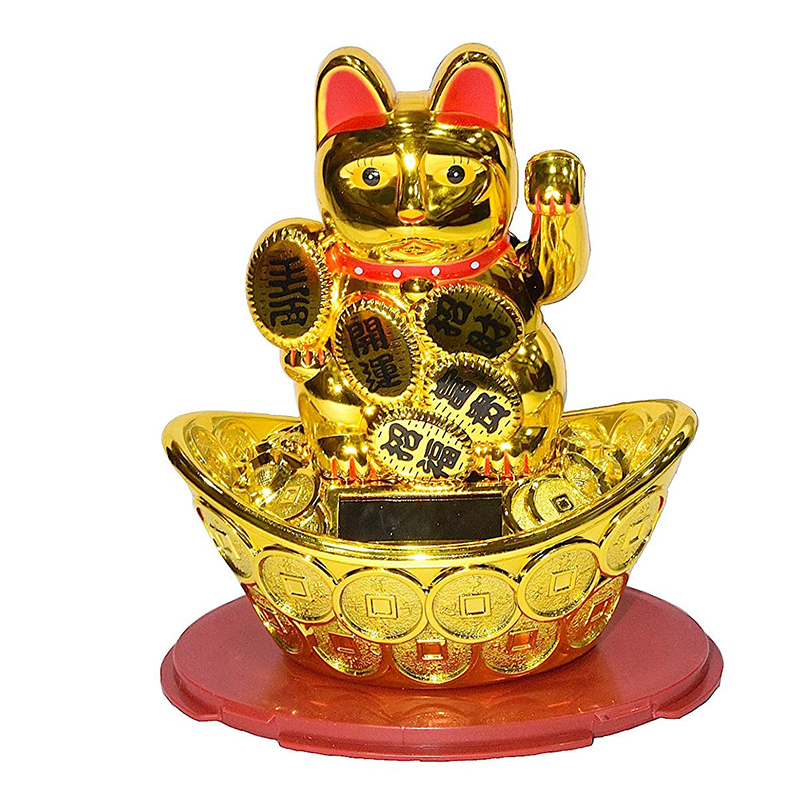 Χρυσή Γάτα Καλωσορίσματος που Λειτουργεί με τον Ηλιο Χωρίς Μπαταρίες - Feng Shui Welcome Cat Solar 13cm